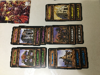 La matériel est composé de diverses cartes qu'on cumulera devant soi et de nombreux jetons pépites de différentes tailles pour indiquer la valeur.